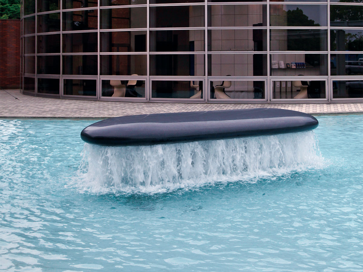 หินขนาดใหญ่ทรงโค้งมนที่ลอยอยู่กลางสระน้ำ